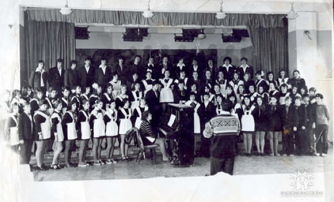 Да и в общеобразовательной школе мои учителя и одноклассники особо не запомнили меня за партой и у доски - я активно принимала участие во всех мероприятиях художественной самодеятельности нашей школы . Ещё, будучи ученицей шестого класса аккомпонировала большому школьному хору, что есстественно, не лучшим образом повлияло на моё среднее образование...............